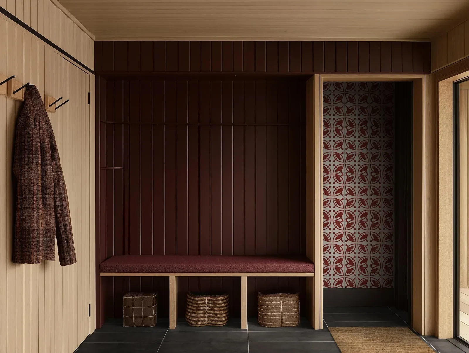 Reclaimed wood or rustic planking for a cabin-like coziness.