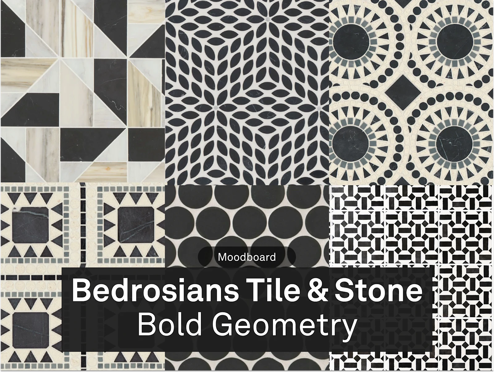 Family-owned since 1948, Bedrosians Tile & Stone has long been a leader in design-forward surfaces. This curated selection showcases black and white tiles brought to life through bold, modern graphics, perfect for backsplashes that need a spark, a splash, or a full-on style shake-up.