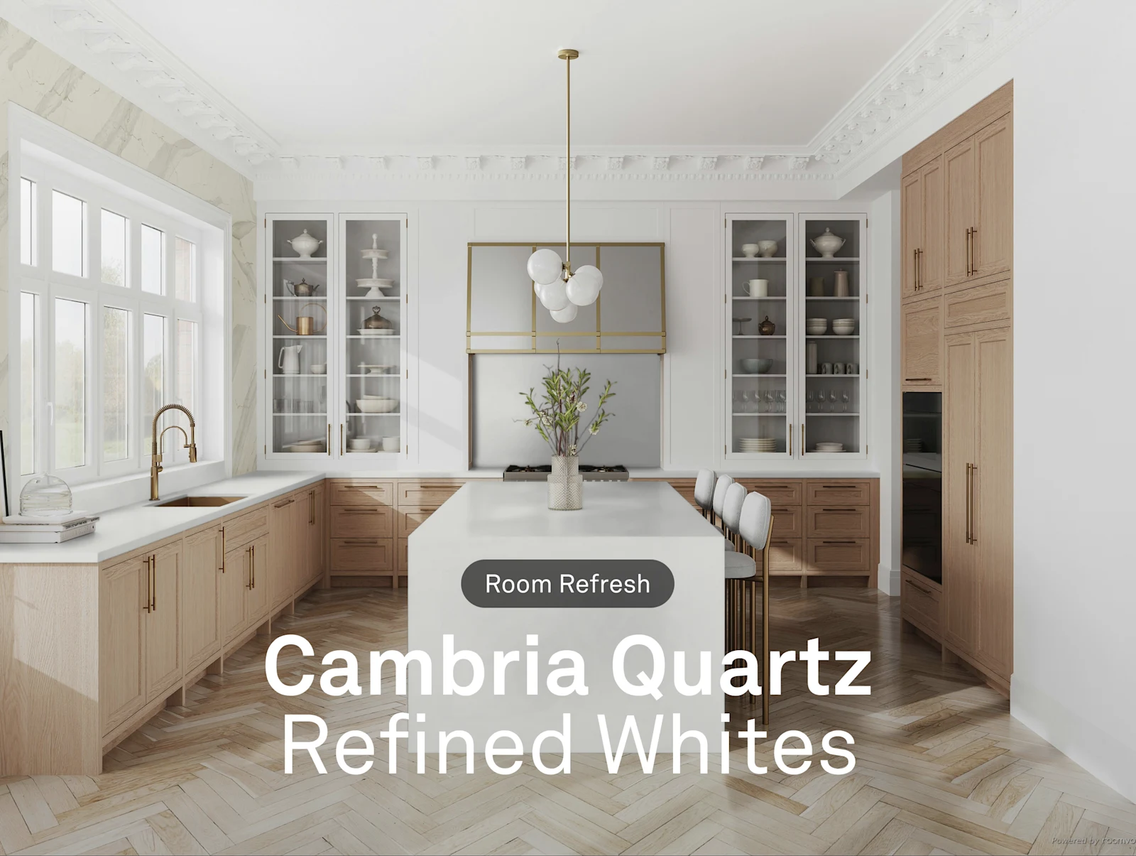 From Cambria Whitehall to other luminous whites, these quartz countertops offer subtle veining, durable performance, and a clean, architectural foundation for kitchens and baths.