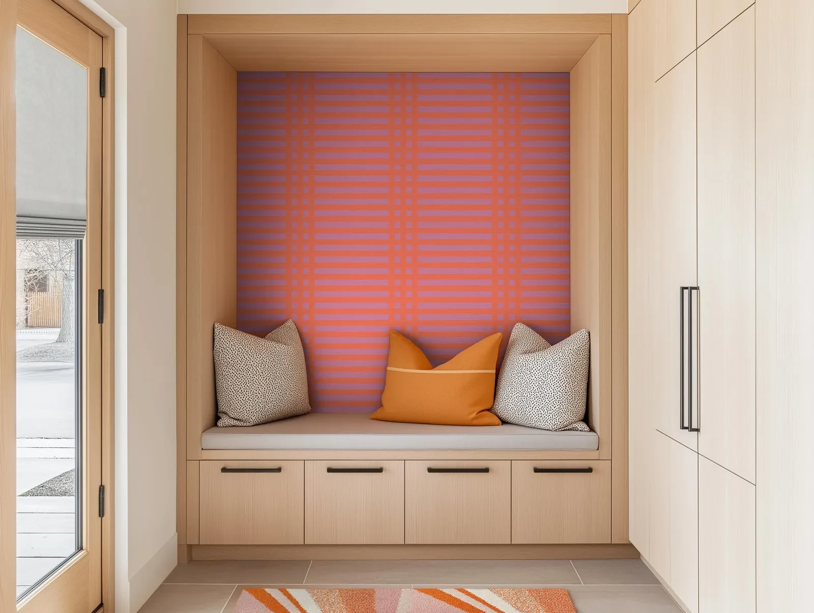 Add energy to your entryway with bold graphic wallpaper, natural wood finishes, and playful pops of color. Discover how vibrant details make a welcoming statement.