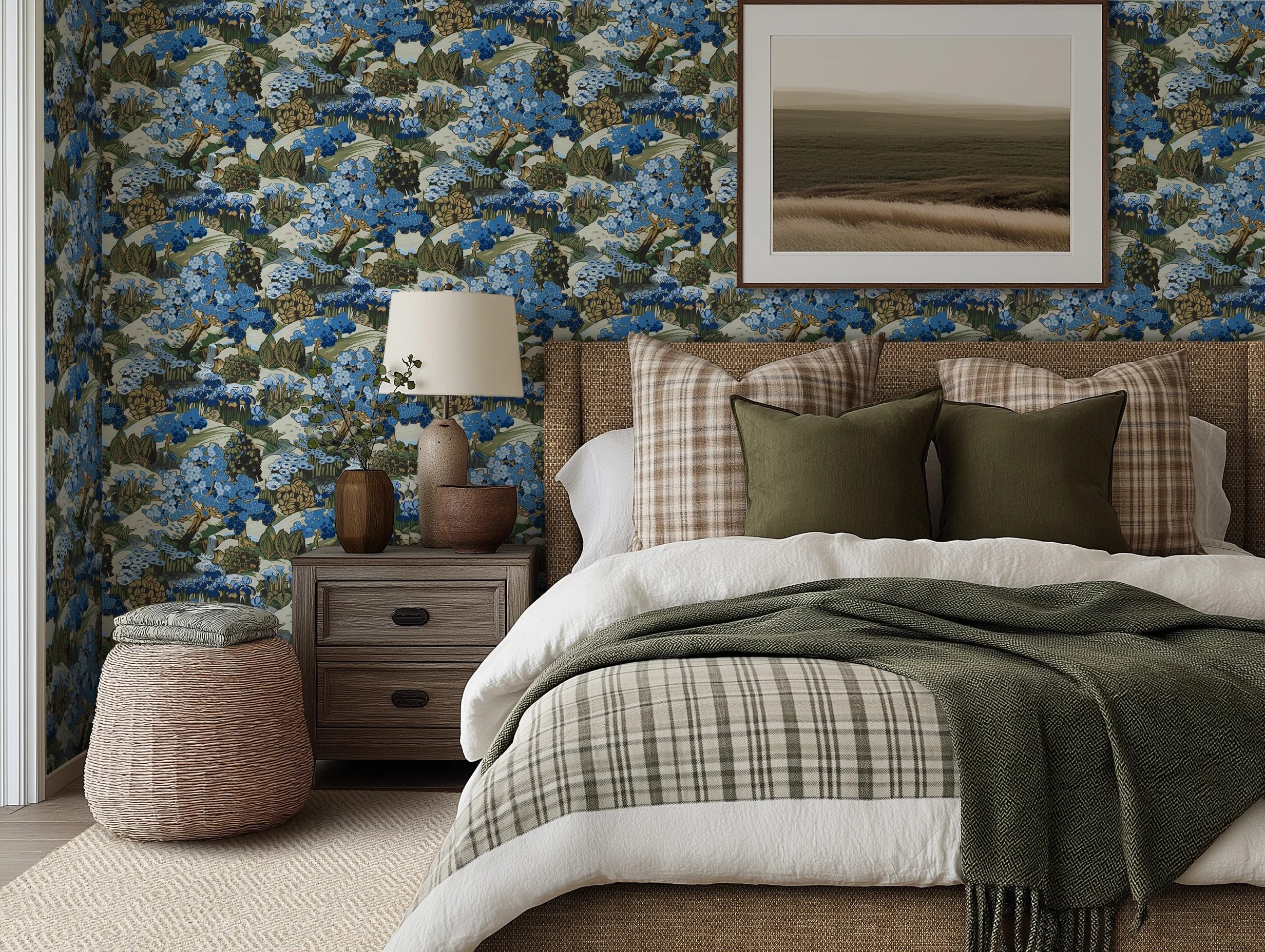 Infuse your bedroom with cozy charm through earthy hues and a lush forest-inspired wallpaper. Explore the materials to bring this nature-inspired retreat to life.