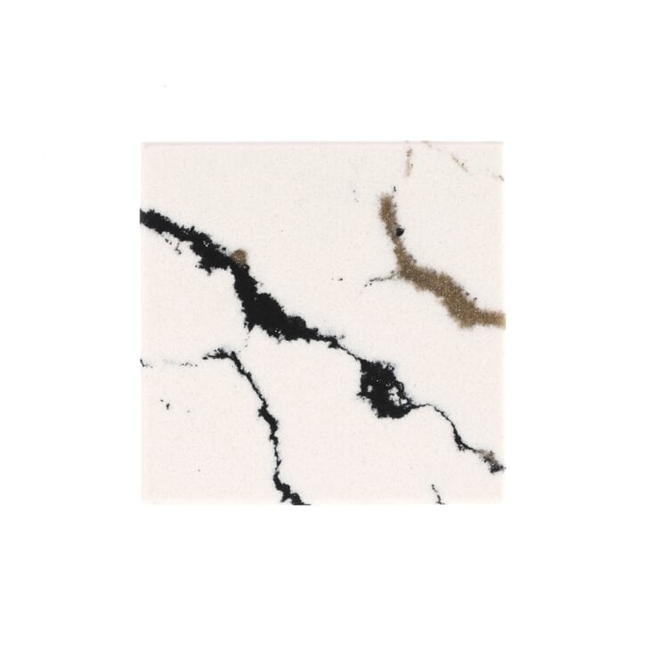 Variations in natural quartz stone color, pattern, size, shape, and shade are unique and inherent characteristics of this product. Material samples are small selections cut from a slab and do not fully show all design characteristics of a slab or the final installed product. Prior to purchase, view a larger representation of a design. Pot holders and trivets should be used to protect a quartz countertop from anything hot, as the material can be damaged by sudden changes in temperature