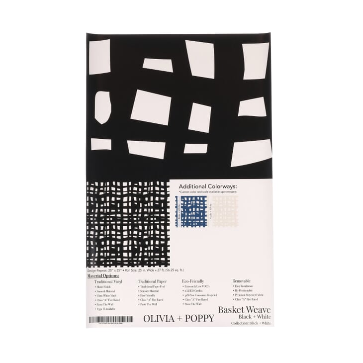 This is classic black and white wallpaper by the designers at Olivia + Poppy. The lovely color combination is sure to add a touch of class to any space. Each black and white wallpaper design available in this collection invites the viewer into an unspoken story. Black and white designer wallpaper can match almost any aesthetic, whether you’re adding to a bedroom, bathroom, living room or kitchen. The art of interior design always is evolving, but these black and white designer wallpaper designs remain timeless.