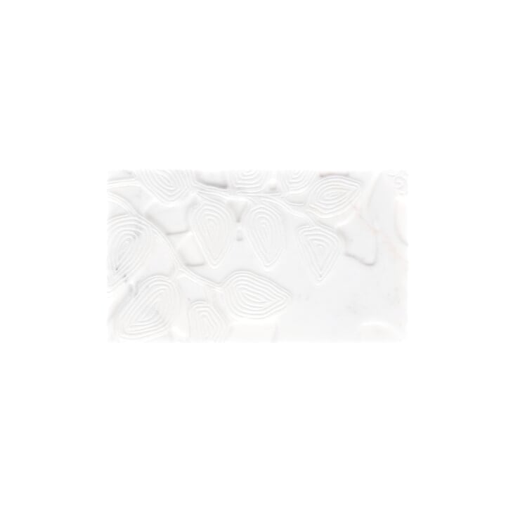 With Sanctuary, Lori Weitzner makes another foray into stone, translating the fantastical land and sea motifs of her Neptune embroidered fabric into intricately carved and laser-etched dimensional marble, limestone and dolomite. Sanctuary is offered in 3 contrasting colorways — Nero, Moca Cream and Volakas. The pattern's leaves and flowers resonate from each stone, transporting the viewer to an exotic space in which texture and pattern harmonize. It is offered in 16-by-16-by-1/2 inch Moca Cream limestone and Volakas dolomite and 16-by-16-by-3/8-inch Nero marble, all with a soft, honed and carved dimensional finish.