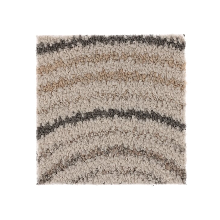 Frolic through the playful waves of this mismatched swirl design. This low-profile rug features soft tufts worthy of an impromptu nap time. This is a random pattern and no two carpet tiles are alike. The pattern will not align.