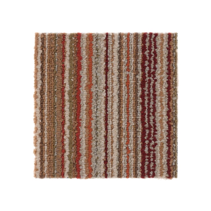 Line up your style with this rug featuring stripes in contrasting colors and weights. This durable yet stylish look is perfect for heavy foot traffic and areas prone to spills. This is a random pattern and no two carpet tiles are alike. The pattern will not align.