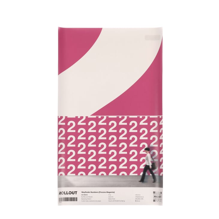 Wayfinder Numbers is a graphic wallcovering that serves a functional purpose within the context of architecture. While wallpaper is typically decorative, and symbols are generally functional, this combination of the two creates new possibilities for architects, interior designers and space planners to incorporate custom wallcoverings as a creative approach to functional design.