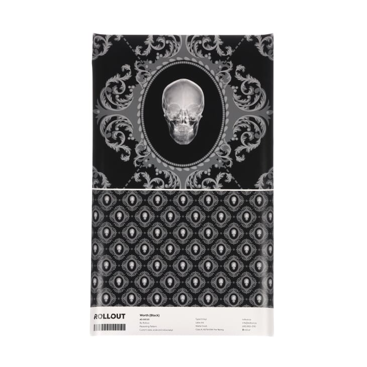 Mashing together themes around punk rock, granny and brothel, Worth is a beautifully eerie statement around voyeurism and vanity. From a distance, the decorative filigree design draws the viewer into the gaze of a series of x-ray human skulls. These "mirror mirrors" reflect the impending decay that will one day wither our beauty and strip away our youth. Worth that serves as an ominous call that challenges us to live, work and party hard.