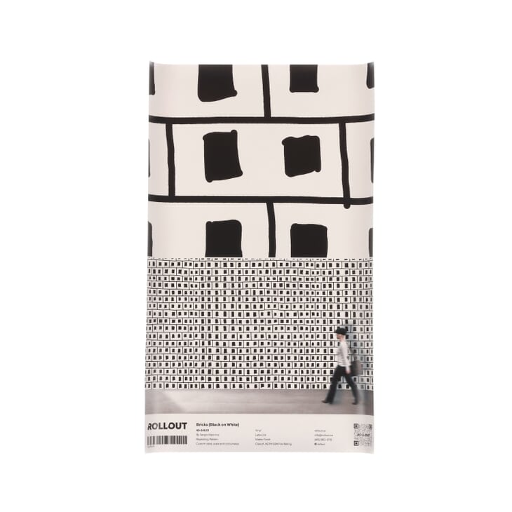 With this design, artist Sergio Mannino created a cartoonish stack of cinder blocks that is level, orderly and playfully imprecise. Like a wall built by and for stick-people, the simplified pattern evokes a childlike naiveté. But it’s also a sophisticated, ironic wink to the viewer, drawing attention to the actual built-form construction on which it hangs.