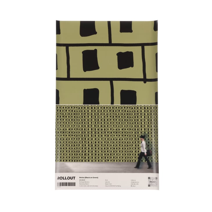 With this design, artist Sergio Mannino created a cartoonish stack of cinder blocks that is level, orderly and playfully imprecise. Like a wall built by and for stick-people, the simplified pattern evokes a childlike naiveté. But it’s also a sophisticated, ironic wink to the viewer, drawing attention to the actual built-form construction on which it hangs.