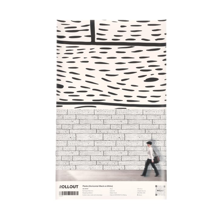 In this design by artist Sergio Mannino, cartoonishly hand-drawn boards are arranged as though set into a traditional hardwood floor. A childlike simplicity infuses the pattern with casual playfulness, while the thick white or black outlines serve to brighten or darken the bold, underlying color of each variant.