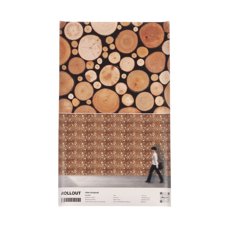 Alder wallpaper is a repeat pattern based on the original Alder wood installation by British Columbia artist and designer Brent Comber. Alder attempts to capture the impression of the intense contrasts of light and dark experienced as sunshine pierces through the dense coastal forest in North Vancouver, or watching the light of the fire burning between logs in the fireplace. By arranging the logs horizontally, Comber creates an eye-level orientation that reveals intricacies within the pattern. The Alder tree represents renewal and regeneration. These trees grow quickly to fill any available space in the forest, contributing to the constant shifts in light and composition as other trees are felled by commercial foresters or die. The works are constructed with salvaged wood rejected by the commercial wood industry that is then photographed. They have been digitally transformed in collaboration with the artist to be reinterpreted as wallpaper.