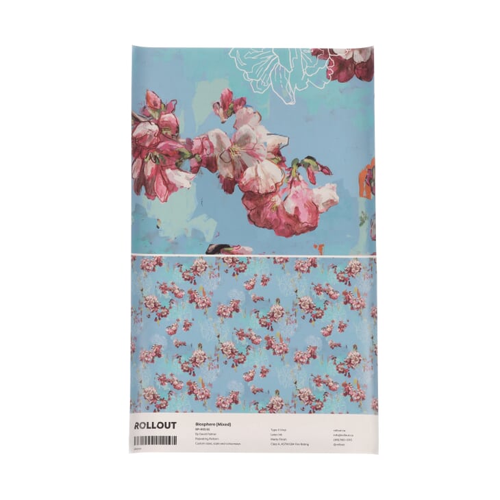 This collection is based on a painting I did of cherry blossoms at the Huntington Gardens in San Marino, California. I'd been looking at a lot of Japanese art, so I'm sure that was an influence, and the broken-up surface was inspired by aging frescoes I'd seen in Italy. In a way this motif is a meeting of East and West, kind of like California itself. The line drawings layered over the painted imagery, and sometimes appearing on their own, refer to the visual note-taking that makes up much of my art practice. Biosphere is a scientific term for the total sum of living organisms on earth. The many variations within the Biosphere collection give designers the opportunity to choose from a wide variety of color and texture combinations, ranging from understated modern simplicity to richly layered surfaces reminiscent of ageing frescos or peeling billboards. These combinations can be used individually, to set a particular mood, or playfully mixed and matched from panel to panel. Regardless of which selection of backgrounds and colorways are chosen, the overlay of hand-rendered line drawings will tile seamlessly between them.