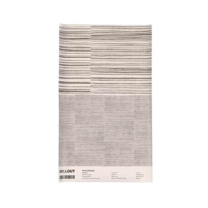 The undulating, vertical stripes of this pattern are inspired by the work of abstract expressionist artist, Agnes Martin. Working in the 1960's, her explorations into Zen Buddhism led to the creation of meditative, contemplative pieces whose minimalism strove, as she put it, to attain "zero" - the perfect state of mind. In adapting these ideas for Rollout, Artist Robert Sangster celebrates the smudged messiness of Martin's hand-drawn graphite lines. He has arranged them into oscillating densities that read as vague shadows from a distance, but resolve into finer details as the viewer approaches.