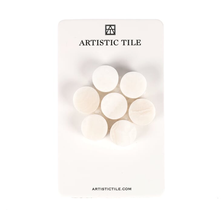 Penny Lane is our take on penny-round mosaics, elevated in Artistic fashion through the use of luxe natural stone and presented in a true penny size, in an offset pattern. Penny Lane is uniquely suited for graphic installations of two or more colorways, in color blocks or in stripes. Vanilla Onyx is polished; all other colorways are honed.