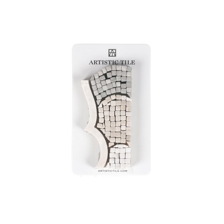 Adena reimagines Lori Weitzner's luxurious Adelaide embroidery pattern in micro-mosaic stone. Tiny tumbled pieces of stone are set into an ombré pattern inside of intricately scalloped marble frames. The result is a beautifully arched, textured and timeless arabesque in 3 tranquil colorways: Blue, crafted from Bardiglio Nuvolato, Azul Cielo and White Sand; Cream, with White Sand, Pink and Thassos marbles; and Gray, combining Smoke limestone, Botticino and White Sand.