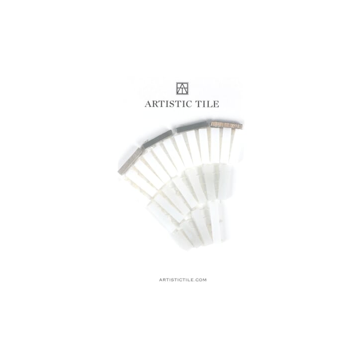 Fan Club takes a pattern from antiquity and forges it from dazzling Jazz Glass, adding an artistic glass mosaic flair to a familiar motif. It is stocked in solid Ice White, Blue Ombre with brushed brass, Cream Ombre with brushed brass and White Ombre with stainless steel. The pattern in each colorway is truly special ? tasteful, timeless and thoroughly unique.
