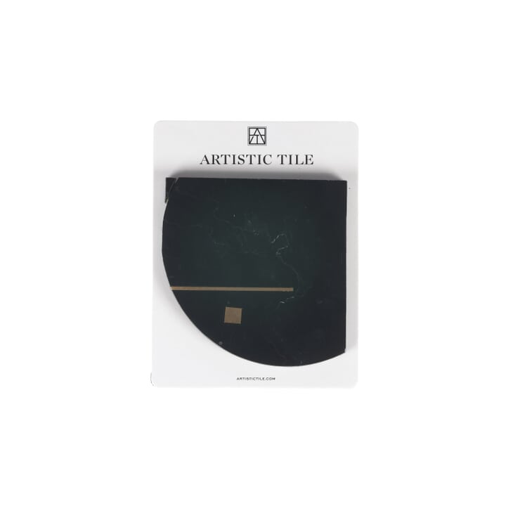Staccato brass notes strike a unique course through Tempo, the latest of our inset patterns inspired by music, rhythm and dance. Black circles and stars of waterjet-cut Nero marble are accented with fine brass squares and lines in a pattern whose lively movement is made subtle through understated complexity.