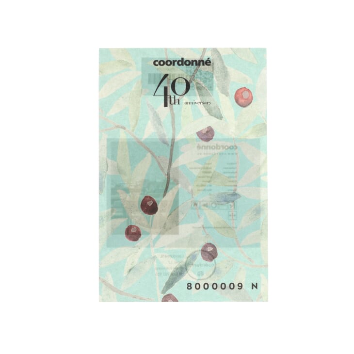 Leaf Craze Lagoon Coordonné’s wallpaper from 40th anniversary collection with vegetal design in green tones.