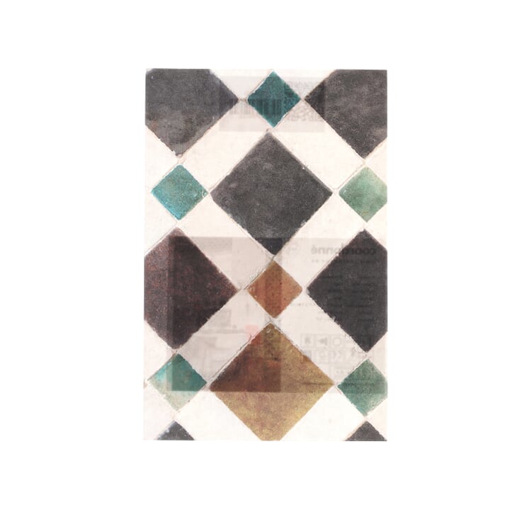 Coordonné’s Feria wallpaper is a geometric design in green tones. It's from the Tiles Collection.