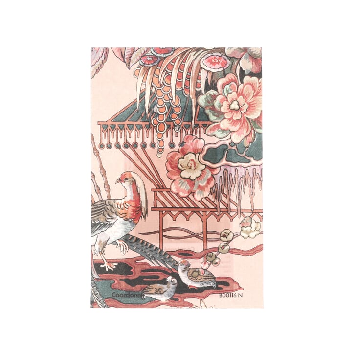 Coordonné’s Sacred Pheasants Rose is a pink/red wallpaper. Plumage that adorns extravagant imperial feasts.