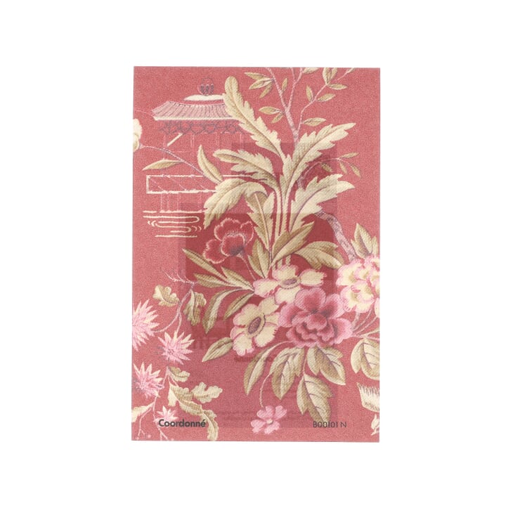 Coordonné’s Tang Walk Ruby is a red/wine wallpaper. Dressed up Ladies of the Court out for a spring walk.
