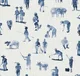 Coordonné’s Sineu Indigo wallpaper depicts people and is designed in blue and navy tones. It's from the Mallorca Collection.
