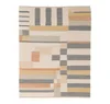 Inspired by mid-century geometric motifs, the Lamya rug features a luxuriously soft double-woven boucle texture and a unique palette of warm and neutral hues created from natural and overdyed wool. Decorative hand stitching at each end adds a clean, unique finish.
