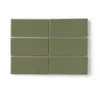 Mossy Peabody is an olive green tinged with grey that fits perfectly into earth-toned spaces or any room you’d like to infuse with a touch of tranquility. Glossy finish with a shiny, semi-reflective sheen. Very low color variation, and low crackled detailing. Applied to our durable Recycled Tile Body, LEED eligible.