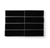 Our darkest glaze, Raven’s true black hue and glossy finish add refined luster and saturated contrast to any space. Glossy finish with a shiny, semi-reflective sheen. Very low color variation, and low crackled detailing. Applied to our durable Recycled Tile Body, LEED eligible.