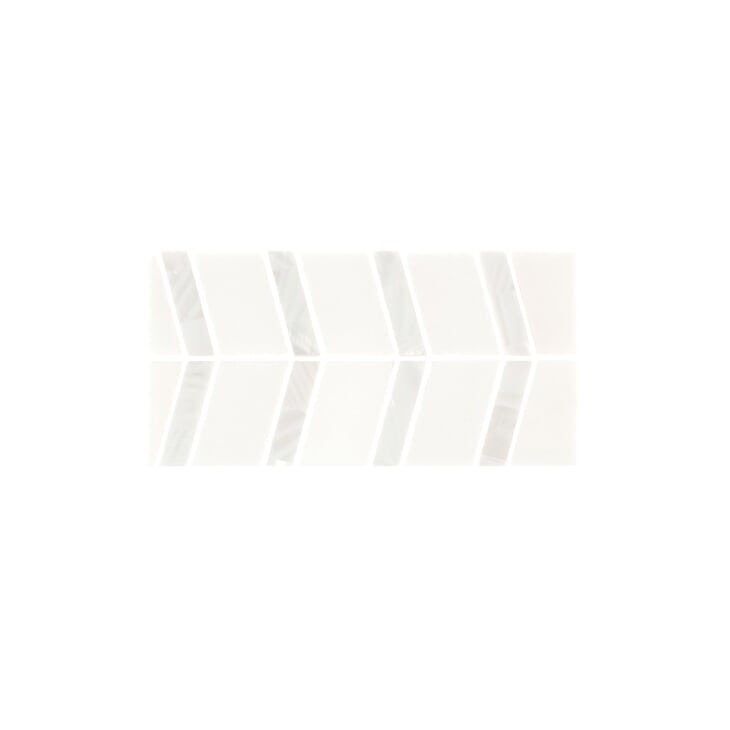 What better way to boldly reintroduce one of our most popular patterns but to simply reinvent it? Composed of white Thassos marble and mother of pearl and presented in a timeless-with-a-twist chevron pattern, our new Alerion Series is ideal for a variety of settings, from contemporary to classic, and will serve as a great focal point within your home. While there are plenty of options for adding cool geometric prints to your surroundings, nothing quite matches the sleek sophistication and whimsical charm of chevron. Pearl tile is not recommended for installation in places where it will be submerged in water, such as a shower floor or pool, as submersion will cause the tile to darken over time.