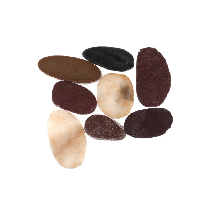 These are real marble rocks of various sizes that have been halved and hand-set on a fiberglass mesh backing. Create a unique and eye catching backsplash or focal point of your room with this mesmerizing multicolored cobblestone pattern. This is great for walls in a bathroom, fireplaces or as a backsplash in your kitchen. You can clean-cut the sheet to make borders and buttons of any size.