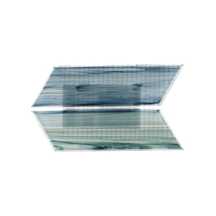 Introduce true artistry into your space with the Maya Collection. With a stained glass appearance, these glass mosaics provide a sense of movement and fluidity within any design. The collection is created in two formats: a unique, stacked mosaic that has an inverted dimensional line in the center and a chevron that can be laid horizontally for a trapezoid subway look. These pieces have gorgeous texture and aquatic-jewel tone colors, and will add a sparkle to any accent wall, powder room or bathroom wall.