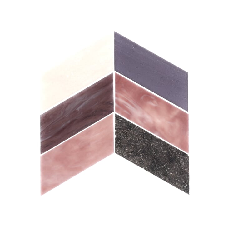 More than a grand gesture, the introduction of the Meta Collection designed by Elizabeth Sutton pays homage to art for art’s sake. Known for her vibrant use of color, Sutton’s talents are on full display. Meta is a boldly reinvented chevron cut from brilliant stained glass. This energetic collection is available in a glossy finish and 8 gorgeous colorways. Within them, simpatico hues pop in any application. Meta is mounted on 17-by-17-inch mesh sheets for easy installation.