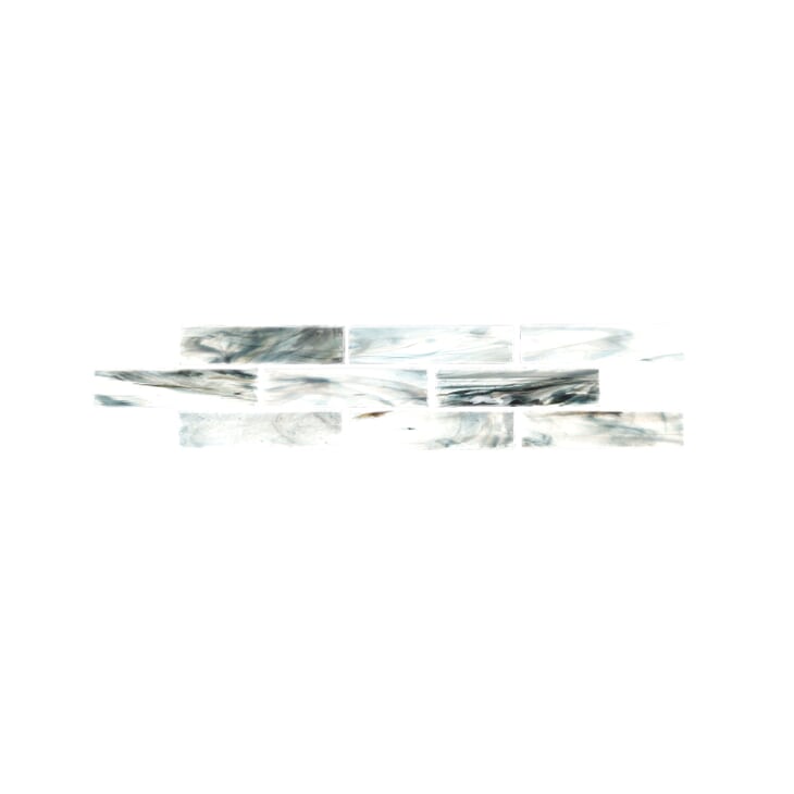 Dive into the depths of modern design with the Artwater Collection. This series of hot-melted glass mosaic tiles showcases a contemporary color palette of black, deep blue and pearl white, transforming your backsplash or pool into a chic statement. Swirls of metallic colors create movement throughout the tile, while an iridescent polished finish adds a touch of glamour to create stunning reflections across the elegant brick pattern. This mesh-mounted mosaic tile is easy to install and offers a unique and durable option for any submerged spaces, water features or backsplashes.