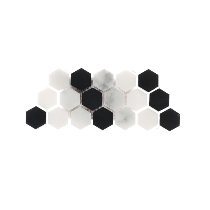 Designed with practicality in mind, mosaic tiles have endured for more than a century for many reasons. Truly timeless, our Helios Honeycomb Gray and White tiles have a sophisticated appearance; they hark back to polished retro styles; and the marble from which they’re cut is beautifully nuanced. The warm tones of this gray and white palette are at home anywhere.