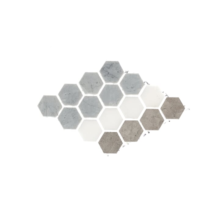 Designed with practicality in mind, mosaic tiles have endured for more than a century for many reasons. Truly timeless, our Helios Diamond Gray and White tiles have a sophisticated appearance; they hark back to polished retro styles; and the marble from which they’re cut is beautifully nuanced. The warm tones of this gray and white palette are at home anywhere.