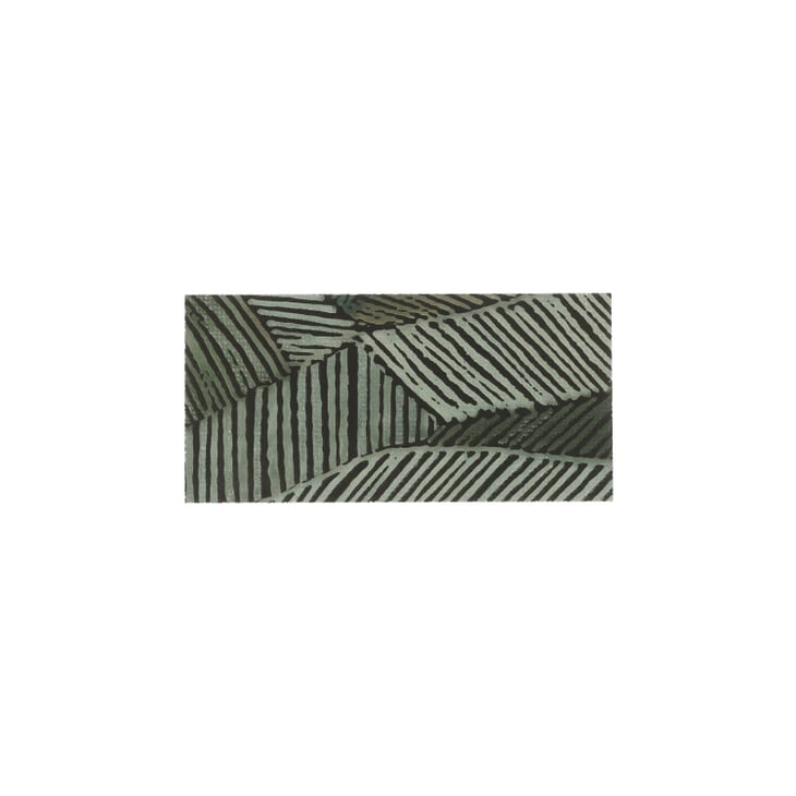 Create a lush and luxurious mural with Monet’s Wild Atelier Green 24x48 porcelain tile. Stunning in any application, our Monet collection tiles are particularly well suited to shower walls, as a fireplace surround or in the kitchen. This large format decorative tile showcases a tropical motif in greens and blues and features bold black outlines reminiscent of block print designs.