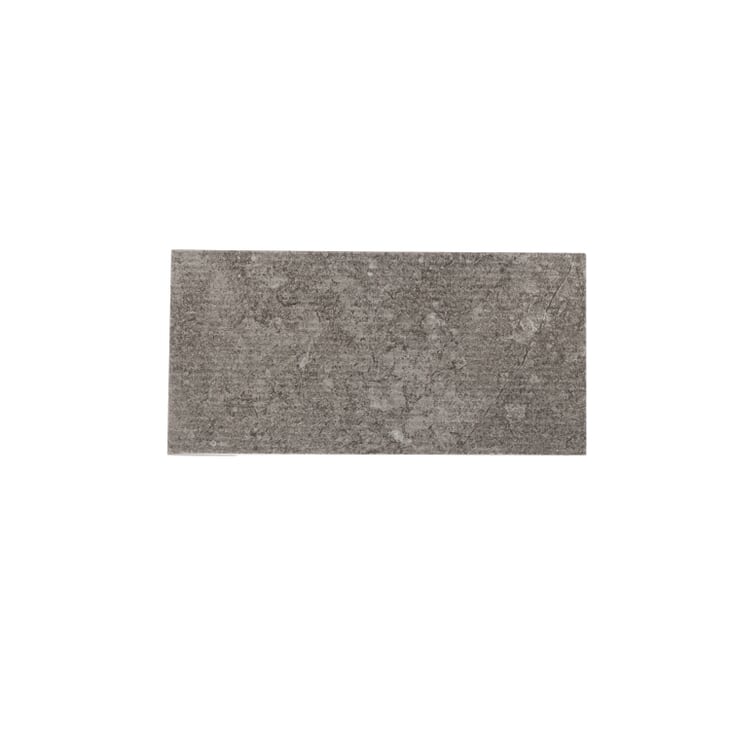 New Rock Fumo Gray 12x24 Chiseled Porcelain Tile features a smokey gray color with subtle charcoal and ivory veining, recreating the look of Lecce limestone from Salento, Italy. The large format allows for easy installation in large and small spaces, while its chiseled matte finish adds a realistic, rough-hewn texture to this timeless stone-look tile.