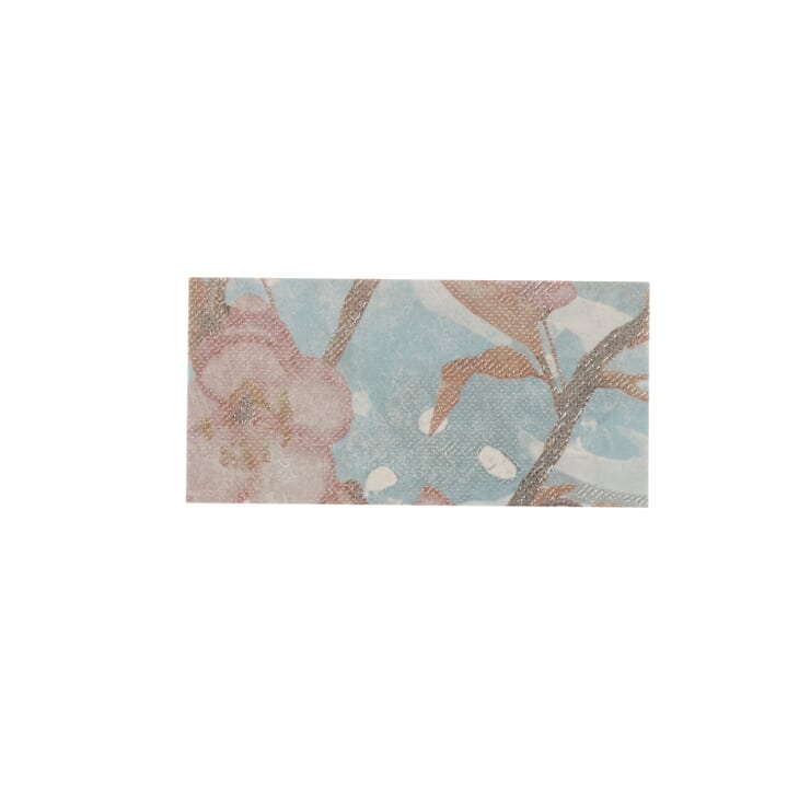 The botanical world comes alive in this fine art inspired collection by designer Paula Purroy. A variety of materials, including glass, real silver, and real gold, are applied to the oversized tiles, which are fired between every application. And while there are high-tech aspects to production, artisans are involved in selecting colors and materials; and temperatures during multiple firings. The result is an expandable work of art with the lifelike look of a painting or mural, rendered in porcelain.