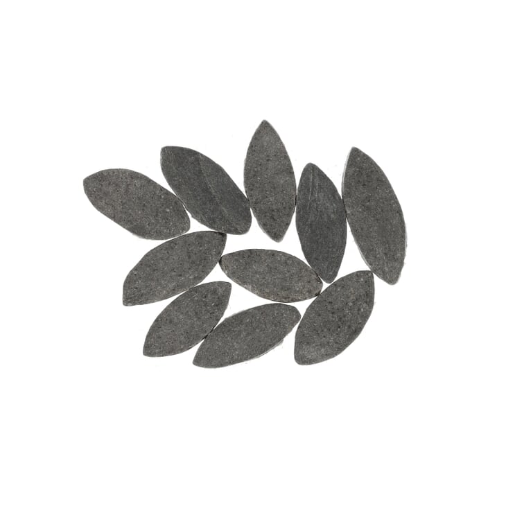 Nature Flower Lava Black Pebble Mosaic Tile is made up of petal-shaped slices of dark gray marble that create a dynamic floral pattern mosaic. The subtle color variations of the stone provide a soft organic quality, reinforced by a natural honed finish. This botanical pattern, combined with the beauty of natural stone, creates a nature-inspired calm and spalike environment.