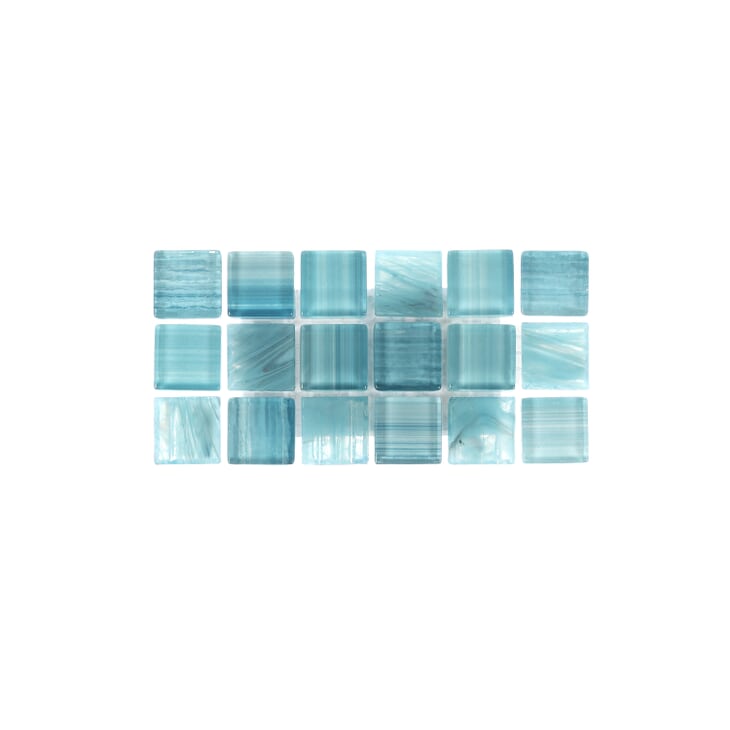Dive in our Marley Collection, a glass pool tile line that exudes fresh luxury with a splash of creativity. Constructed of melted glass and crystal glass, this series of pool mosaic tiles elevates a classic blue color palette with stunning printed patterns inspired by the movement of water under the sun. Diverse shade variations in each mosaic tile and mixed finishes on the glass create a colorful composition that enhances the glistening quality of underwater tiles, with 2 different size formats allowing for a play of scale and pattern. Special mesh backing makes these mosaic tiles ideal for submerged tiling projects, providing a durable and long-lasting result underwater.