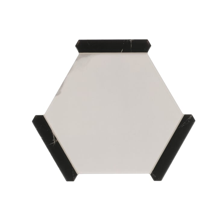 Inspired by ancient Islamic architecture, our Sagon collection gives the traditional hexagon a modern twist. A patented mold forms narrow pickets on three sides of each 9-inch porcelain tile; faux grout lines give the appearance of prescoring, and the tile’s interlocking feature simplifies installation. The Spanish-made tile is available in multiple neutral colorways.