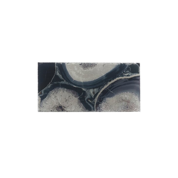 Agate Glass is a best-in-class collection of gemstone lookalikes showcasing the organic beauty of sliced agate. It features translucent jewel tones and handcrafted glasswork, giving it the ability to mimic genuine agate with unparalleled realism. These large-format, double-layered glass tiles are created using traditional, as well as modern 3-D printing techniques. The sophisticated collection is recommended for indoor wall use only.