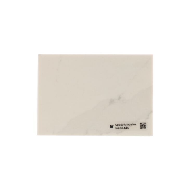 Calacatta Aquilea has wide cool grey veins running diagonally within the slab and accented by thin darker grey veins giving this design a unique large scale marble look.