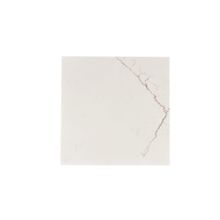 Capogrossi is a warm white quartz with a very subtle two-tone background. The design is traversed by long, thin, intersecting veins that are both brown and black.