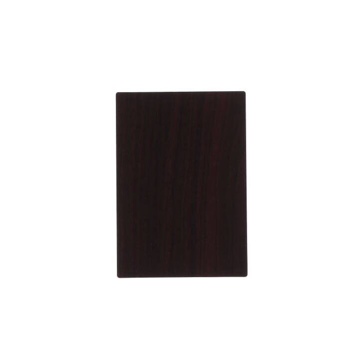 This is a reddish-brown mahogany laminate design. The rich red coloration is accented by the pronounced black graining with full cathedrals. The approximate design repeat length is 36.5 inches; the approximate design repeat width is 14.5 inches.