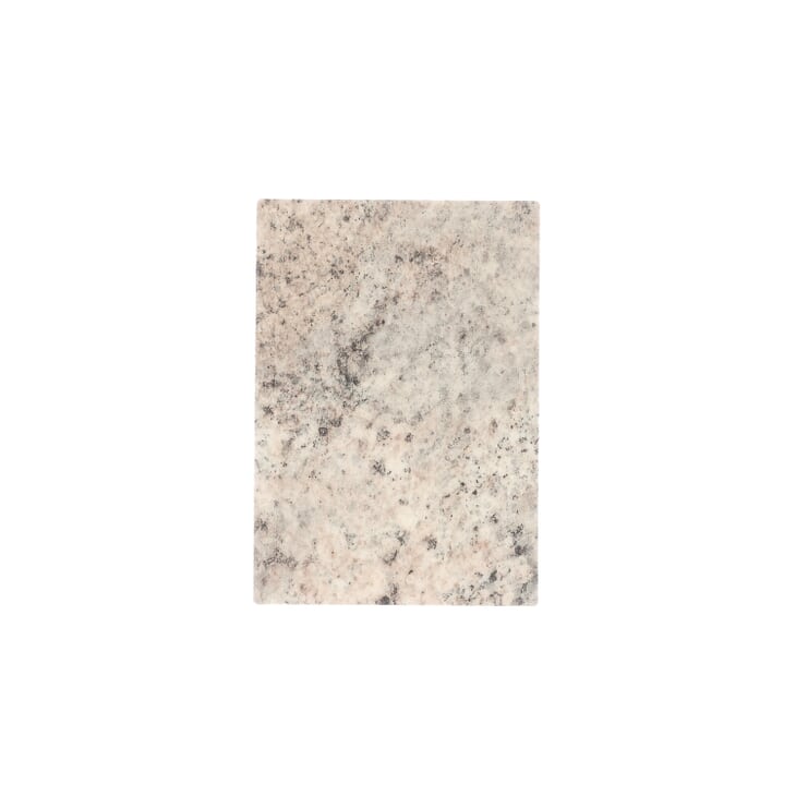 Madura Pearl is a large-scale granite laminate design with movement and color play. The overall color is warm white|with soft accents of peach and taupe and various tones of gray for depth. The approximate design repeat width is 60 inches; the approximate design repeat length is 48.5 inches.