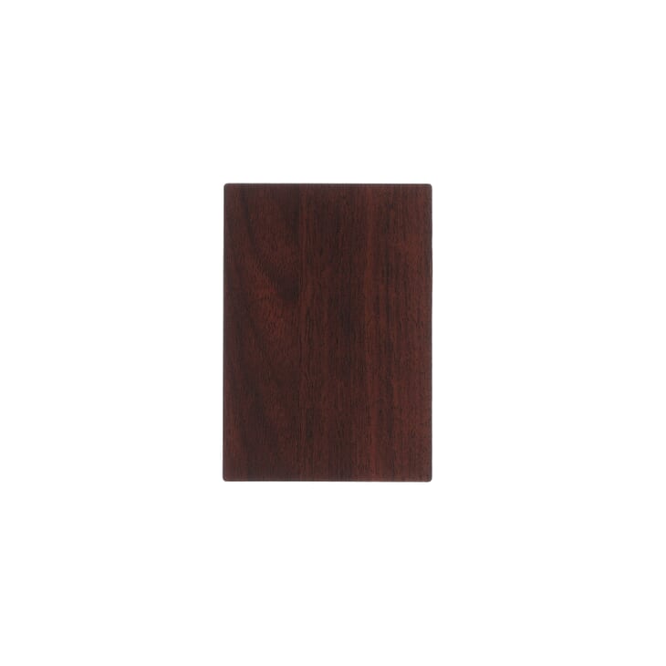 This is a walnut laminate design|with subtle planking|a slight anigre movement and cathedral. The overall color is deep brown|with sienna undertones. The approximate design repeat length is 37 inches; the approximate design repeat width is 39 inches.