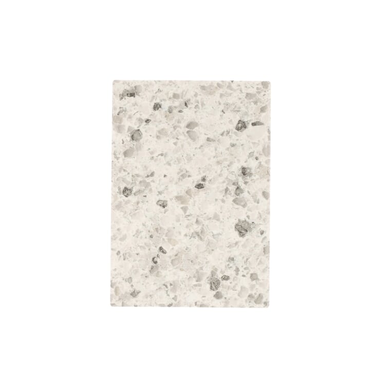 Leche Vesta is a medium-scale abstract that resembles packed stone|with a white background plus gray and black medium-size particulates. The approximate design repeat length is 49.2 inches; the approximate design repeat width is 62.25 inches.